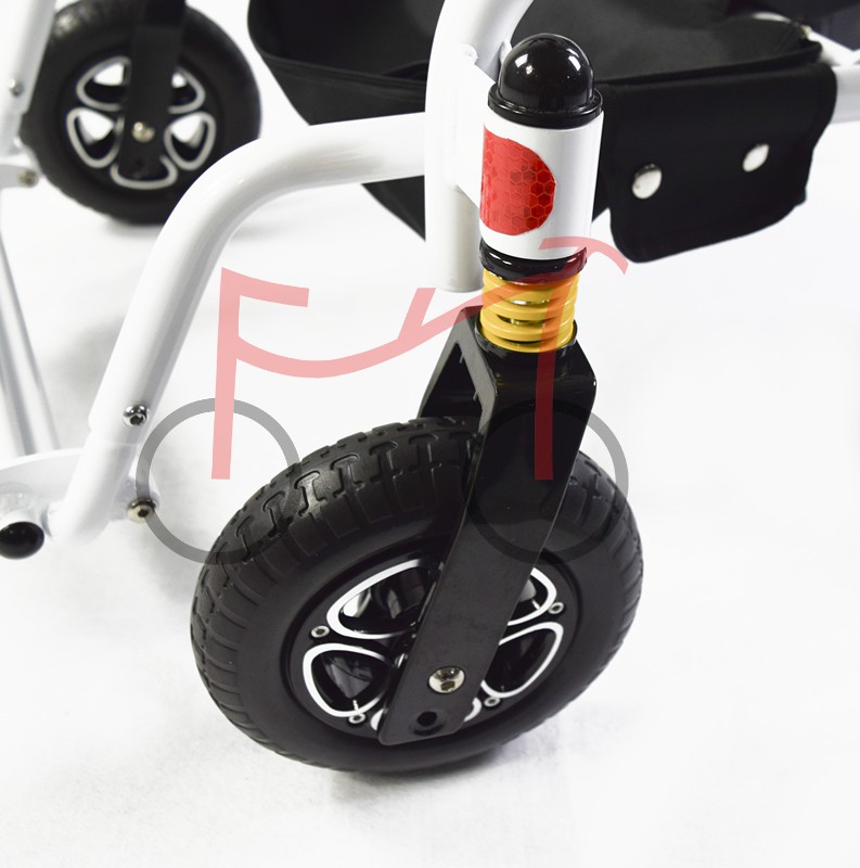 Product size 900*600*880mm Motor 24V/200W with brushless motor Battery 24V/6.6Ah*2 Controller Shanghai Micon Seat cusion width 400mm(W)*500mm(H)*410(D) Loading capacity 120kg Travel distance 10 Km per